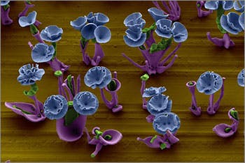 With the hand of nature trained on a beaker of chemical fluid, the most delicate flower structures have been formed in a Harvard laboratory — and not at the scale of inches, but microns.