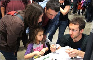 The educational outreach is the result of a collaborative effort between the two arms of the Bioinspired Robotics Platform: Radhika Nagpal’s Self-Organizing Systems Research Group and Rob Wood’s Microrobotics Lab. Members from both groups participated in four major educational forums in April: a Robot Block Party at the Boston Museum of Science, the Science Carnival at the Cambridge Science Festival, a Biomimetics Showcase at the MIT Museum, and the USA Science and Engineering Festival in Washington, DC.