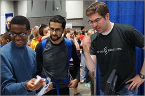 In each instance, the goal was to encourage students from kindergarten through twelfth grade to get excited about science and engineering. To that end, many cutting edge technologies were featured at each event. There were robotic bees that might one day assist dwindling bee populations in pollination duties; squishy, soft robots that can crawl around obstacles and might one day be used to search disaster sites; and toy-sized robot construction workers that can build structures much larger than they are and might one day be able to pile sandbags into a barrier against floodwaters.