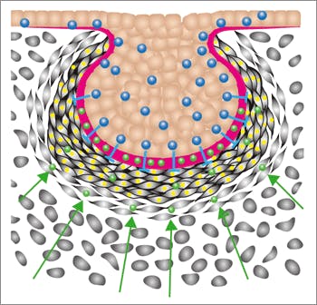 The combined Wyss Institute – Children’s Hospital Boston team discovered that the physical process of compressing and rounding these cells is sufficient to trigger expression of the transcription factors that drive subsequent tooth development. For example, the researchers were able to induce formation of a whole tooth covered by enamel and dentin by mechanically squeezing the connective tissue cells between two rubber plates and then implanting the tissue in an animal.