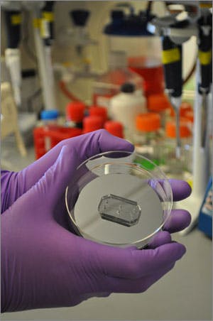 Human Organs-on-Chips are composed of a clear, flexible polymer about the size of a computer memory stick, and contain hollow microfluidic channels lined by living human cells — allowing researchers to recreate the physiological and mechanical functions of the organ, and to observe what happens in real time. The goal is to provide more predictive and useful measures of the efficacy and safety of potential new drugs in humans — which could represent an important step in reducing the need for traditional animal testing.