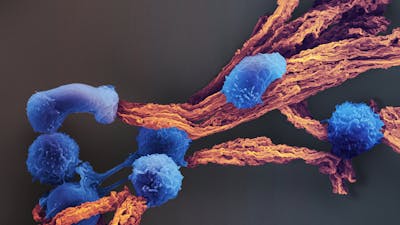 T cells aren’t the only immune cells involved in fighting off invaders – macrophages, or white blood cells, constantly patrol the body for threats, and are often the first cells to flock to a tumor. However, tumors secrete molecules that deactivate macrophages upon arrival, to the point that as much as 50% of a tumor’s mass is made of macrophages.