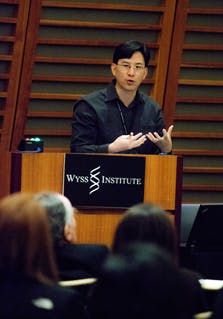The keynote, “DNA-based Building Blocks for Future Therapeutics” delivered by Wyss Core Faculty member William Shih, Ph.D., discussed how DNA can be used as a construction material for nanoscale therapeutic devices. Shih is developing strategies for using DNA building blocks to to deliver drugs to precise targets or to trigger biological mechanisms at specific locations in the body, which could be leveraged to address infections and conditions that result from DLE complications.